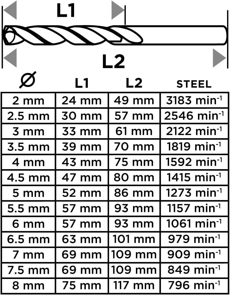 Набір свердел по металу GRAPHITE охоплює найпопулярніші діаметри для монтажних і ремонтних робіт. Високоякісна швидкорізальна сталь забезпечує стабільне свердління та чистий отвір. Зручний кейс допомагає підтримувати порядок і швидко знаходити потрібний розмір.