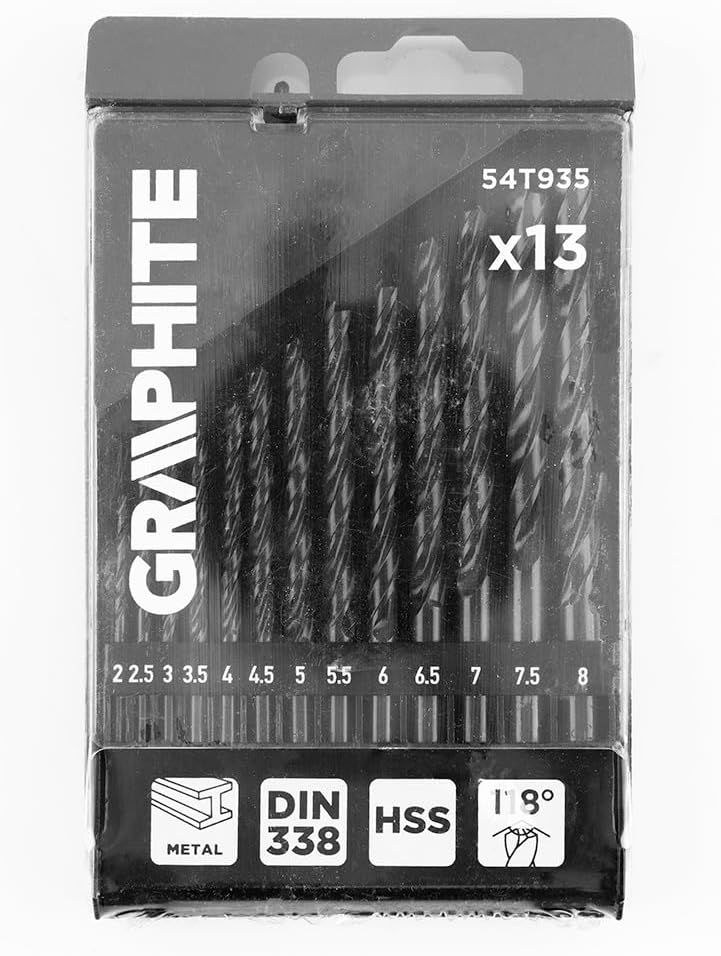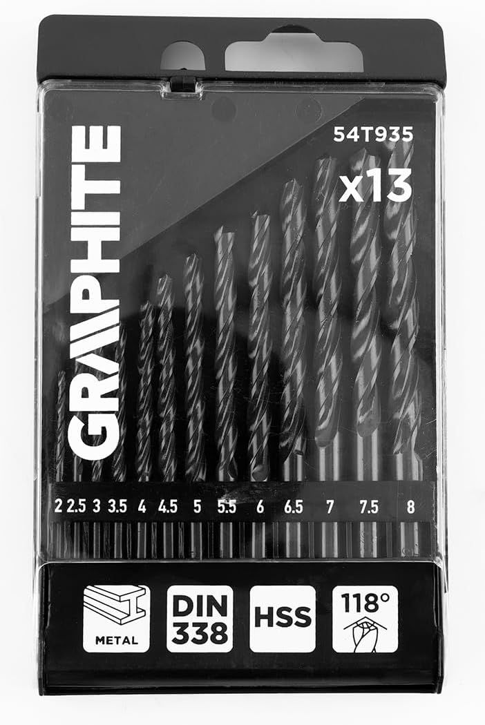 Набір свердел по металу GRAPHITEHSS зі швидкорізальної сталі HSS 2-8мм кейс 13шт