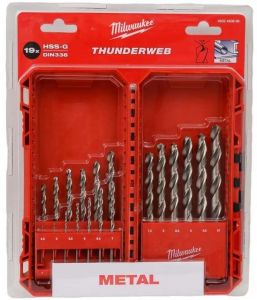 Набір свердел по металу Milwaukee HSS-G THUNDERWEB, 19 шт, 1-10мм, кейс