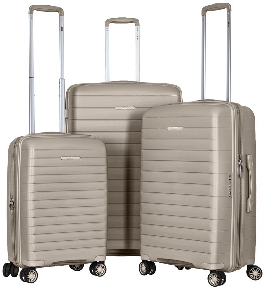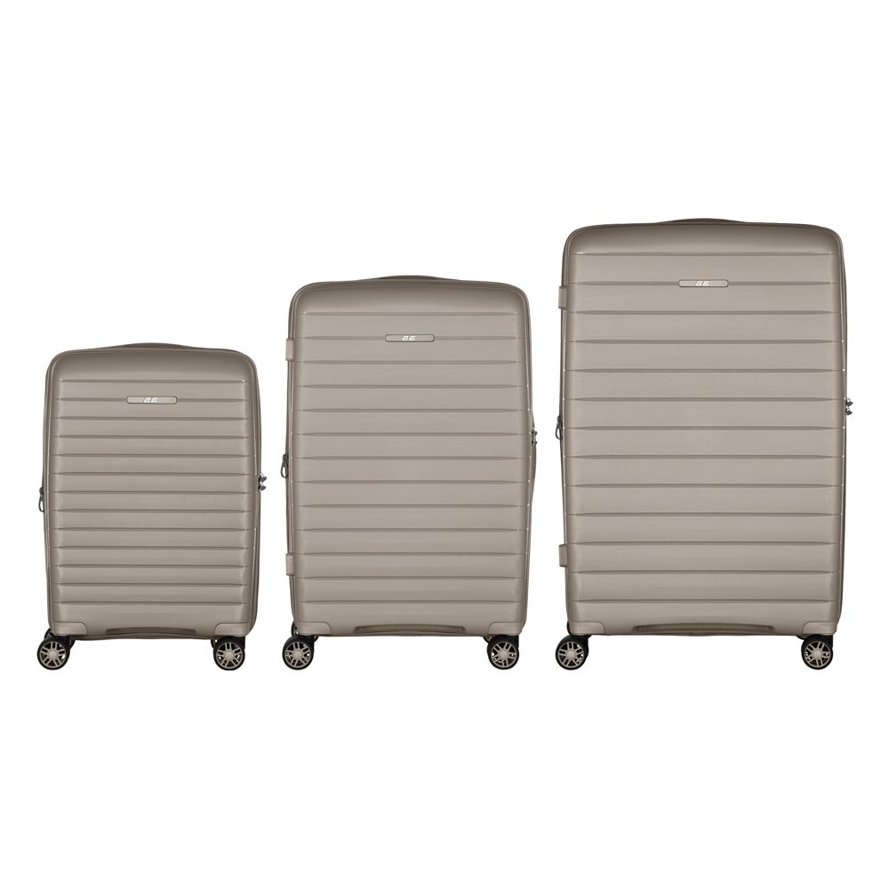 Набір валіз 2E, Aero, поліпропілен, (L+M+S), TSA, 4 колеса, EXP, сіро-коричневий