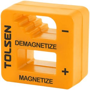 Намагнічувач для викруток Tolsen представляє собою простий пристрій компактних розмірів. Модель підходить для намагнічування та розмагнічування стрижнів викруток з типом шліца РН, SL, а також інших інструментів зі сталі. Виконання цих функцій забезпечують 2 феритових магніта, передбачених конструкцією. Для намагнічування призначений слот зі знаком «+», для розмагнічування – слот зі знаком «-». Пластиковий корпус дозволяє з комфортом експлуатувати ручний інструмент.