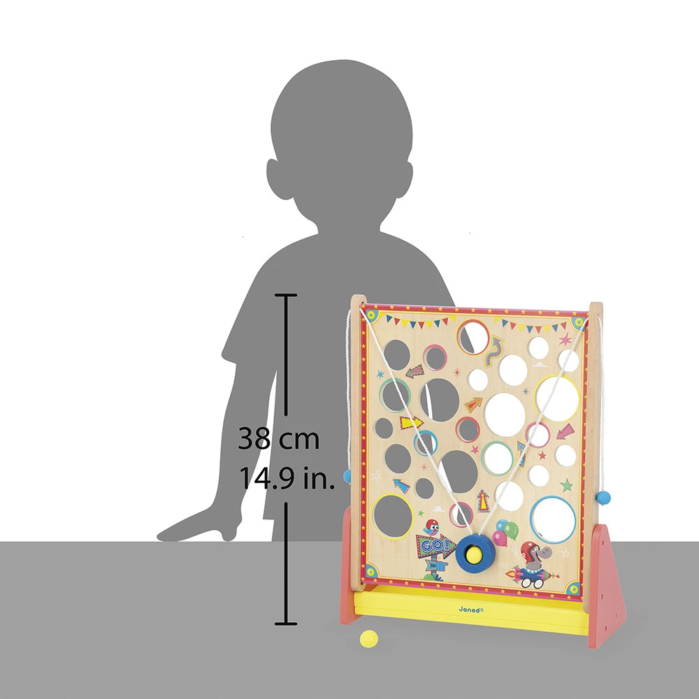 Дерев’яна гра на спритність від 5 років: керуйте двома мотузками й проведіть кульку вгору лабіринтом, уникаючи отворів. Розвиває координацію, увагу й терплячість, підходить для сімейних змагань. У комплекті 2 дерев’яні кульки та підставка з фетровим покриттям для тихого падіння. Виготовлено з дерева з сертифікацією FSC™.