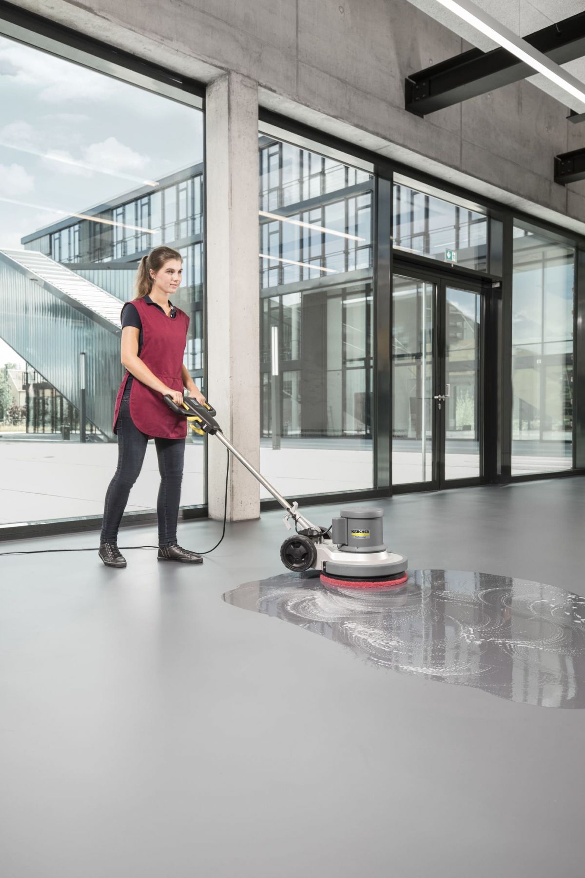 Однодискова підлогомийна машина Karcher BDS 43/150 C Classic призначена для очищення твердих, еластичних і текстильних підлогових покриттів у комерційних приміщеннях. Потужний двигун 1500 Вт забезпечує стабільну роботу та високий крутний момент. Планетарний редуктор із металевими шестернями підвищує зносостійкість і зменшує потребу в обслуговуванні. Робоча ширина 430 мм дозволяє ефективно обробляти значні площі. Конструкція забезпечує стабільне керування та рівномірне очищення поверхонь.