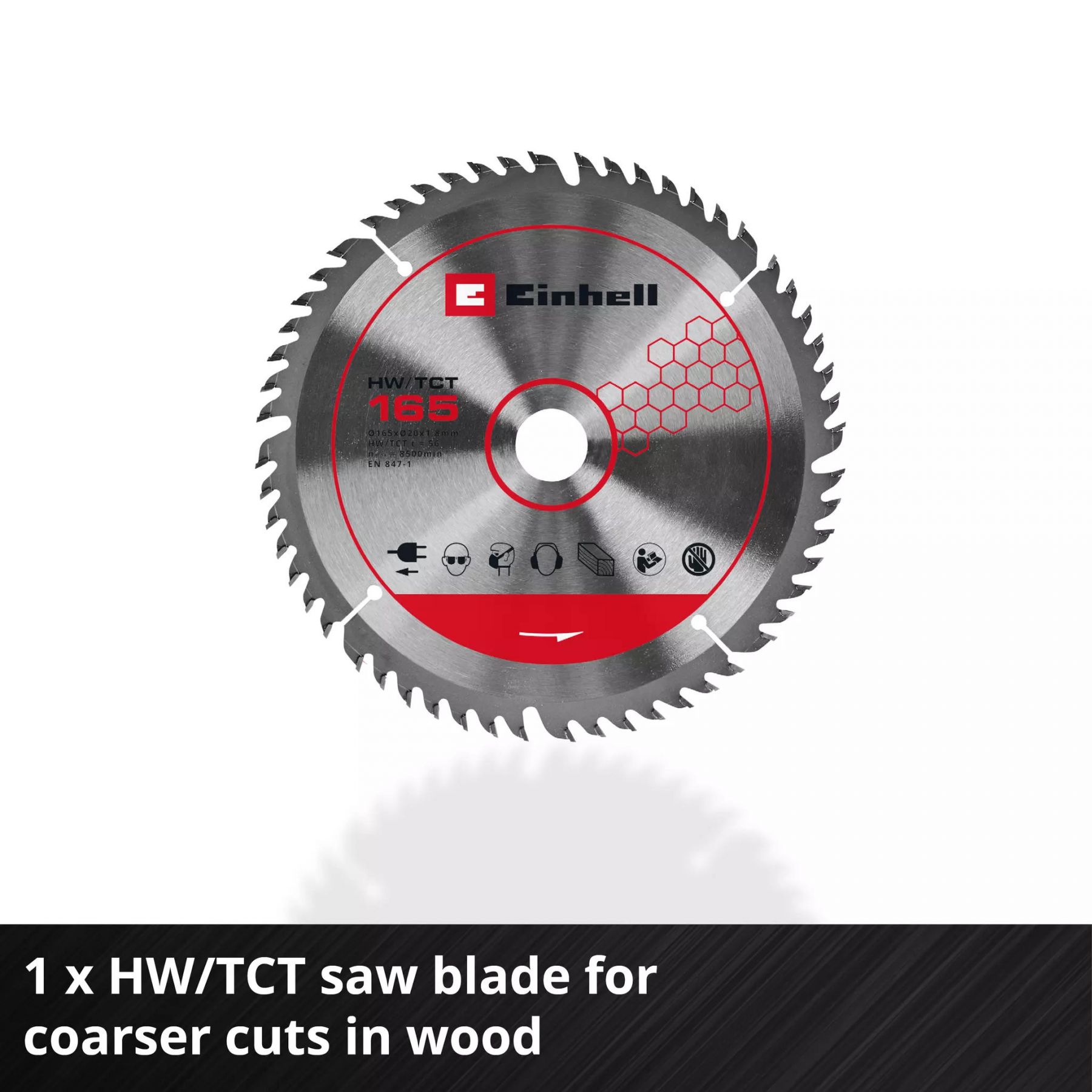 Пила Einhell TP-PS 18/165 Li BL - Solo чудово справляється з деревом та пластиком. Функція розрізу дозволяє занурюватися безпосередньо зверху на заготовку. Твердосплавний диск діаметром 165 мм із кількістю зубів 56 шт забезпечує глибину різу до 56 мм під кутом 90° та 42 мм під кутом 45°. Чистота зрізів гарантована, навіть коли область використання знаходиться близько до краю.