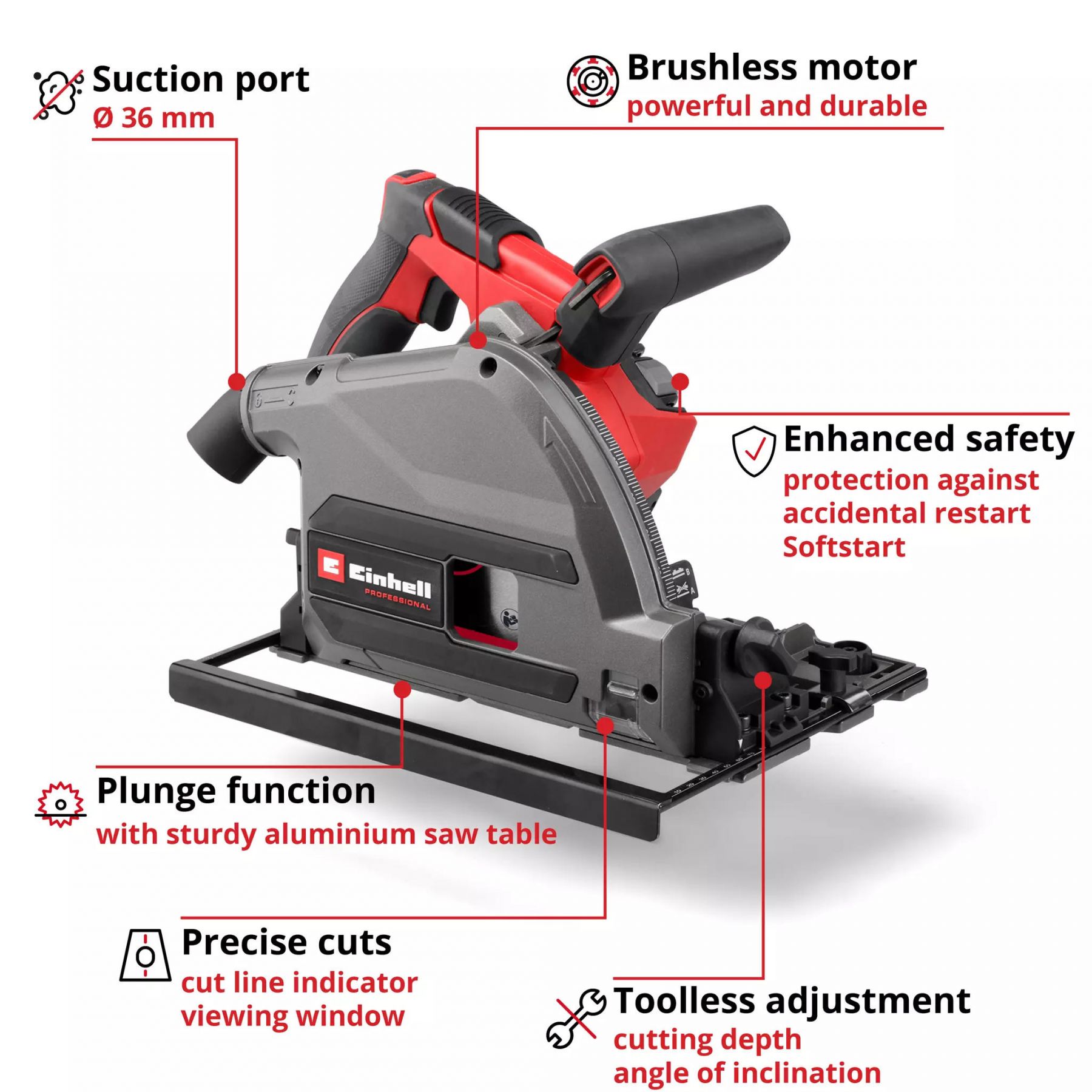Пила дискова заглибна акумуляторна Einhell TP-PS 18/165 Li BL - Solo безщіткова 18В 5000об/хв 165х20мм 4.15кг без АКБ та ЗП