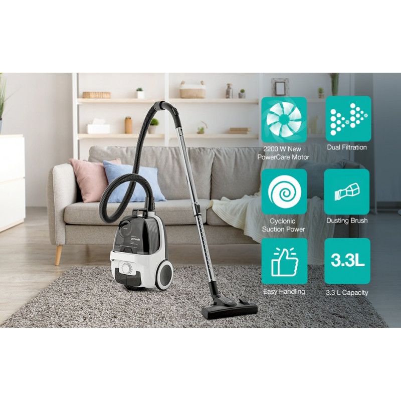 Пилосос Gorenje контейнерний, 800Вт, конт пил -3.3л, HEPA, телескоп трубка, сенсорне упр, білий