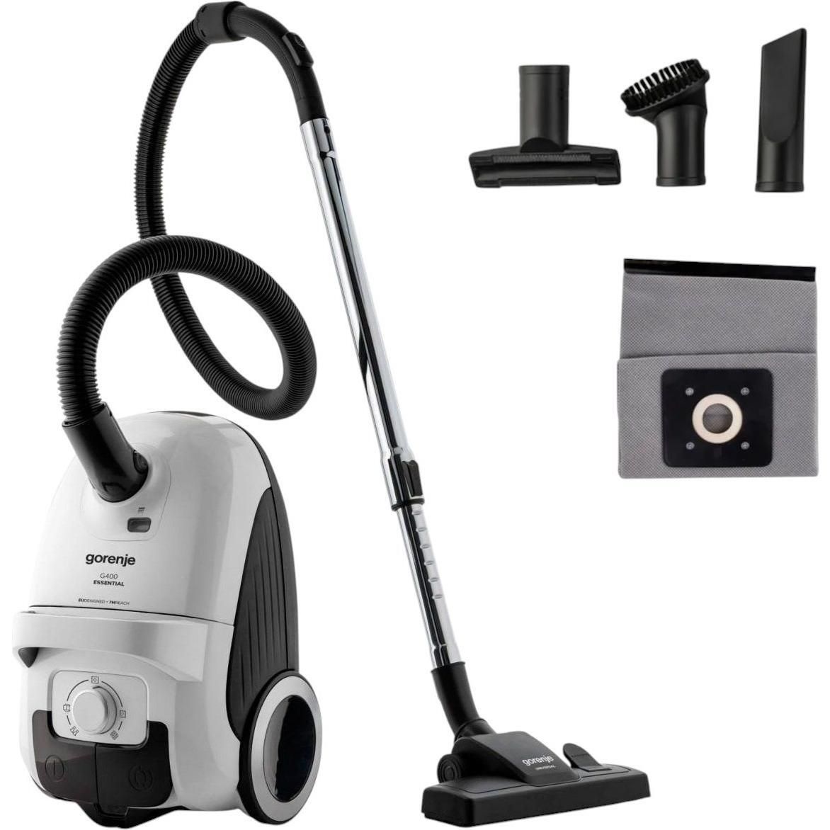 Пилосос Gorenje мішковий, 800Вт, 3л, вага-6.5кг, HEPA, індикатор, телескоп, білий