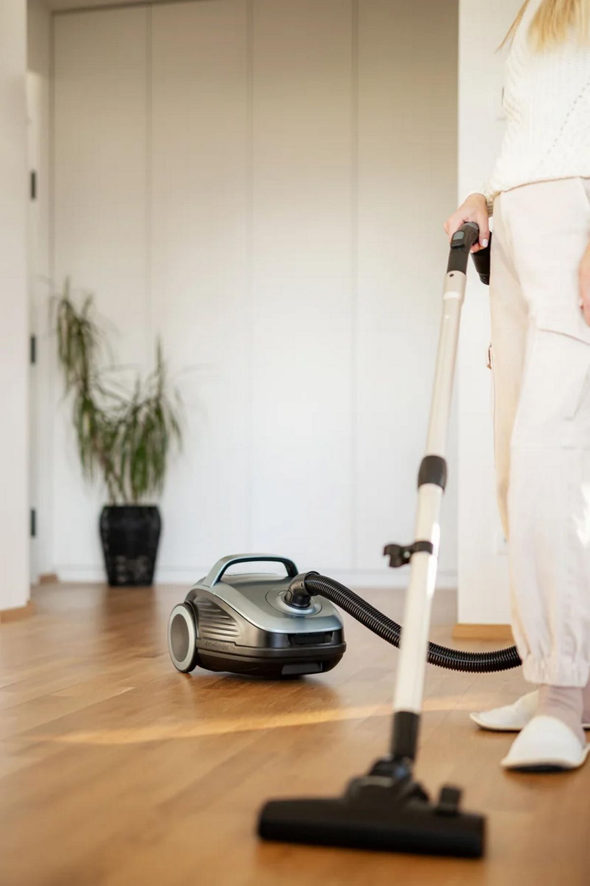 Пилосос MASTER поєднує високу потужність у 2300 Вт з ефективним всмоктуванням 470 Вт для глибокого очищення. Завдяки місткому пилозбірнику на 3 л та HEPA-фільтру прилад забезпечує якісне прибирання і чисте повітря. Зручність використання підкреслюють телескопічна алюмінієва трубка, сенсорне управління та індикатор заповнення мішка. Модель оснащена гумовими колесами, довгим кабелем 10 м і системою Active Bumper для захисту меблів.