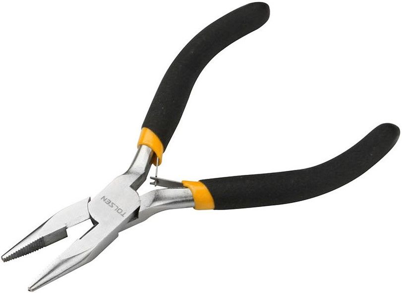 Міні-довгогубці довжиною 115 мм є різновидом механічного інструменту, який призначений для утримання дрібних деталей, цвяхів, дротів, в тому числі при роботі у важкодоступних місцях. Пристосування виготовлено зі спеціальної кованої сталі з нікельованим покриттям, що робить його міцним і зносостійким. Конструкція включає пружну скобу. Двошарове покриття двокольорових безшовних ручок забезпечує антиковзаючий ефект і комфортне утримання інструменту в руці.