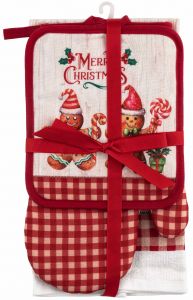 Подарунковий набір для кухні Ardesto Christmas Gingerbread, 3шт, 100% бавовна (рушничок), 100% поліестер (прихватки), червоний