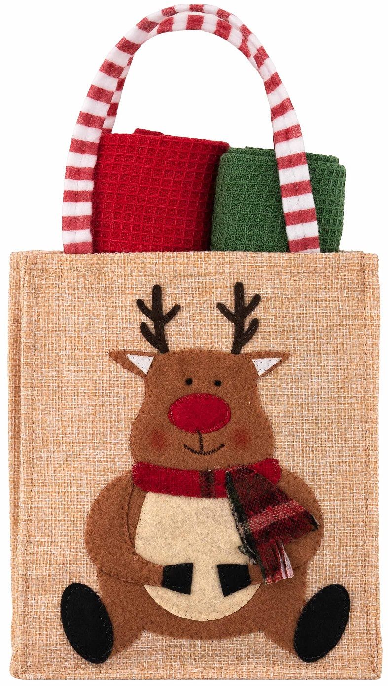 Подарунковий набір рушничків в мішечку Ardesto Christmas Deer 38х63см, 2шт, 100% бавовна, червоний, зелений