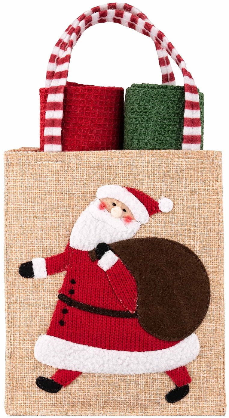 Подарунковий набір рушничків в мішечку Ardesto Christmas Santa 38х63см, 2шт, 100% бавовна, червоний, зелений