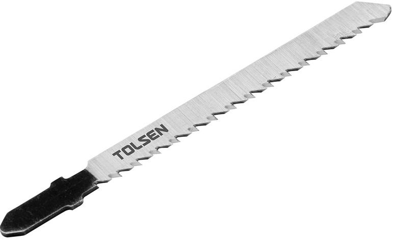 Пиляльне полотно для електролобзика Tolsen T101BR – набір із 5 штук, призначених для роботи з деревиною. Довжина полотна становить 100 мм, із зубцями 10TPI (10 зубців на дюйм), що забезпечує чистий і точний різ, особливо для робіт проти сколювання. Підходить для більшості електролобзиків із кріпленням типу T.