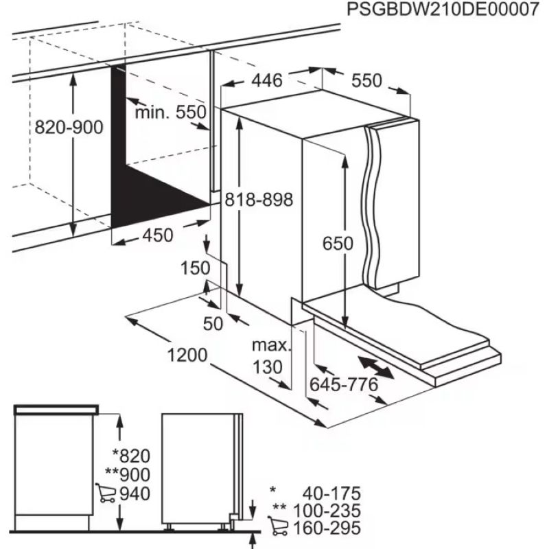 Посудомийна машина Electrolux вбудована, 10компл., Е, 45см, дисплей, інвертор, 3й кошик, чорний