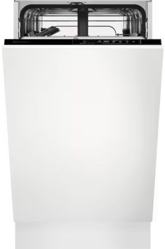 Вбудована посудомийна машина Electrolux EEA71210L з технологією AirDry завершує цикл природним підсушуванням і забезпечує до трьох разів ефективніше сушіння, ніж системи із зачиненими дверцятами. Подвійні розпилювачі подають воду в кожен куточок у верхньому й нижньому кошиках. Є швидка 30-хвилинна програма для невеликих завантажень, а шарніри PerfectFit спрощують монтаж без підрізання плінтуса. Модель оснащена функцією «Полоскання і очікування», автоматичним вимкненням, системою Thermo Efficient та інверторним двигуном.