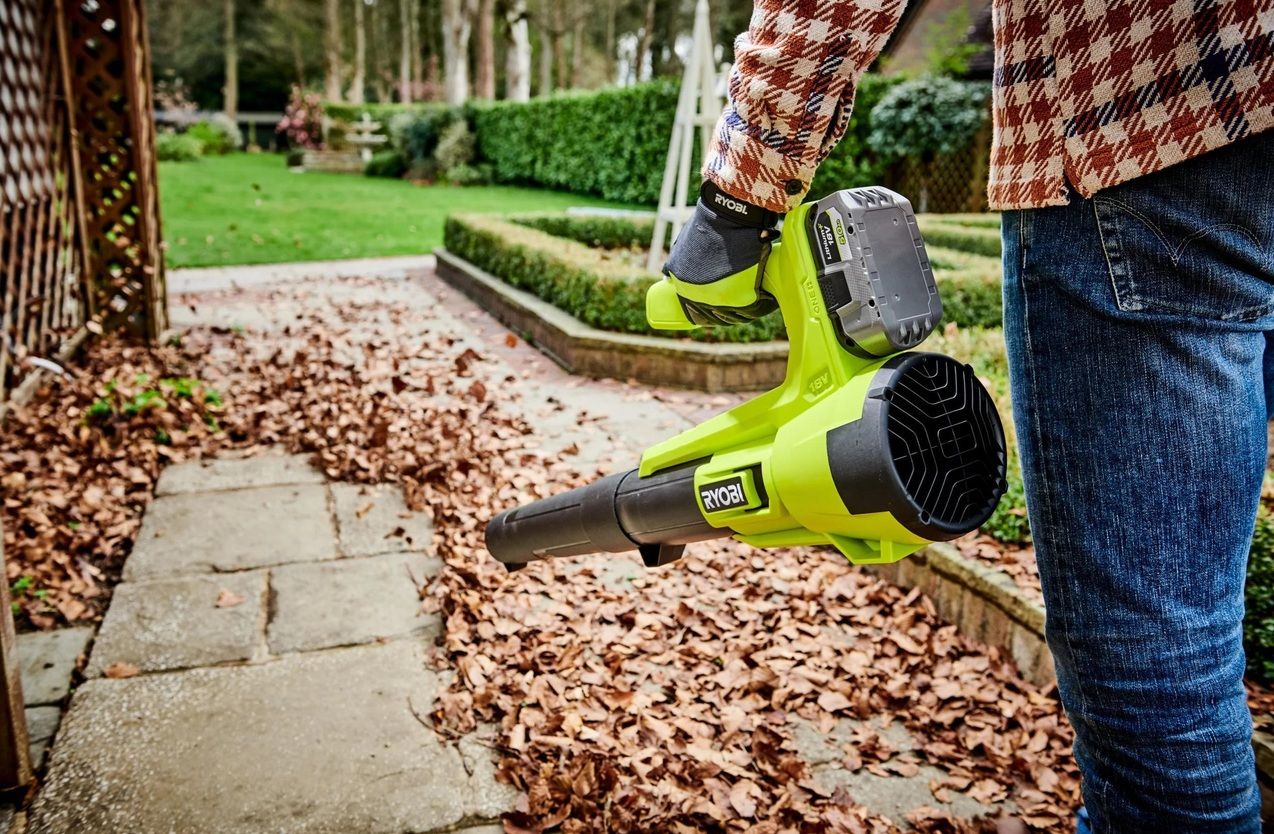 Акумуляторний повітродув Ryobi RY18BLA-0 ONE+ 18В (код товару: 5133005411) відмінний інструмент для видалення сміття з різних поверхонь, як біля будинку, на доріжці, в альтанці, так і в саду, на ділянці. Легка конструкція та досить комфортна в роботі для ефективного видалення липкого вологого листя з твердих поверхонь, особливо у поєднанні зі скребком.