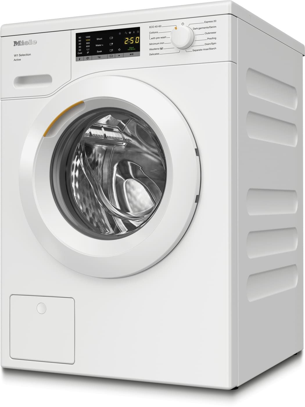 Miele WSA 023 WCS — надійна пральна машина з фронтальним завантаженням та оптимальною місткістю 7 кг для повсякденного використання. Інверторний мотор працює тихо й економно, а клас енергоефективності A+++ допомагає зменшити витрати на електроенергію. Віджим до 1400 об/хв ефективно видаляє зайву вологу, скорочуючи час сушіння. Зручний дисплей та просте управління дозволяють швидко обрати потрібну програму. Miele — якість і догляд за речами, яким можна довіряти кожного дня.