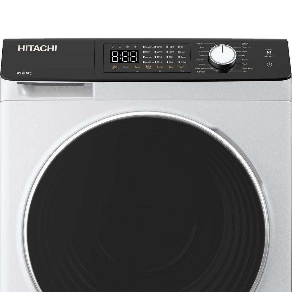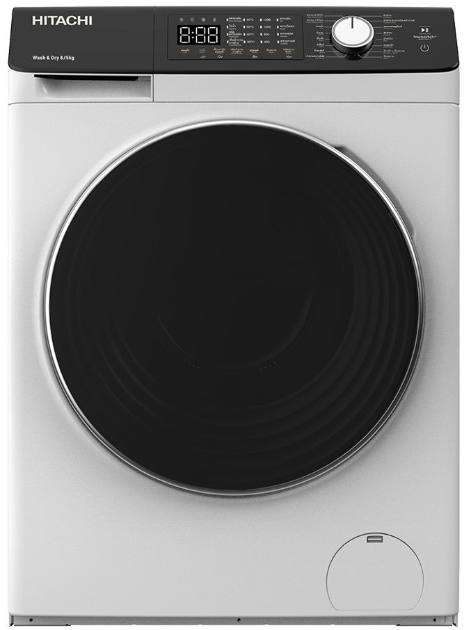 Прально-сушильна машина Hitachi фронтальна, 8(5)кг, 1400, A, 60см, дисплей, пара, інвертор, білий