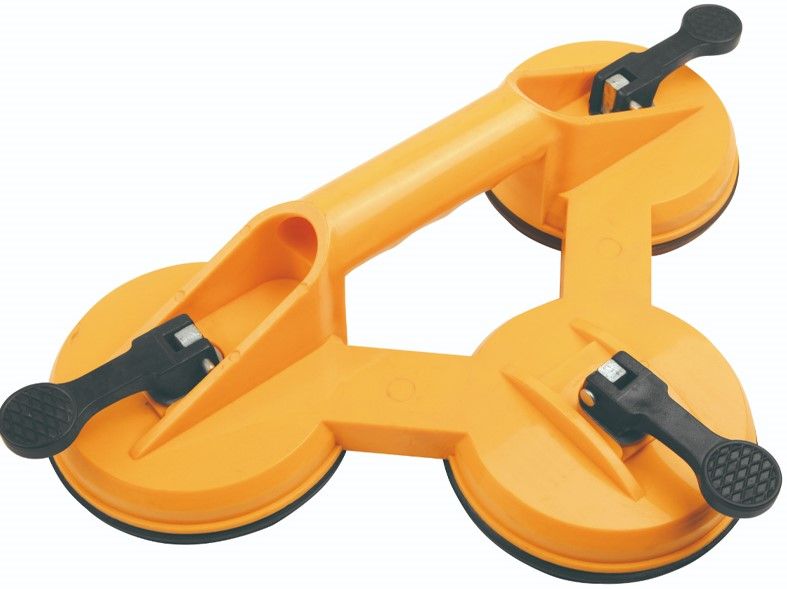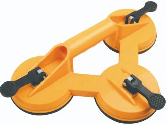 Присоска потрійна представляє собою вакуумне пристосування, призначене для полегшення встановлення, демонтажу і переносу скла, дзеркал та інших виробів або матеріалів вагою до 75 кг. Підходить для використання як в профільних майстернях, так і в домашньому вжитку. Конструкція складається з трьох круглих присосок діаметром 115 мм кожна і рукоятки із затискачами для зручного та швидкого захоплення/випуску скла. Корпус виготовлений з міцного, стійкого до деформацій пластику.