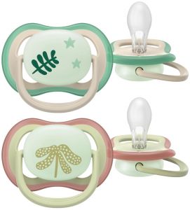 Пустушка Avent Ultra Air Нічна, 6-18 міс., 2шт, нейтральний дизайн.