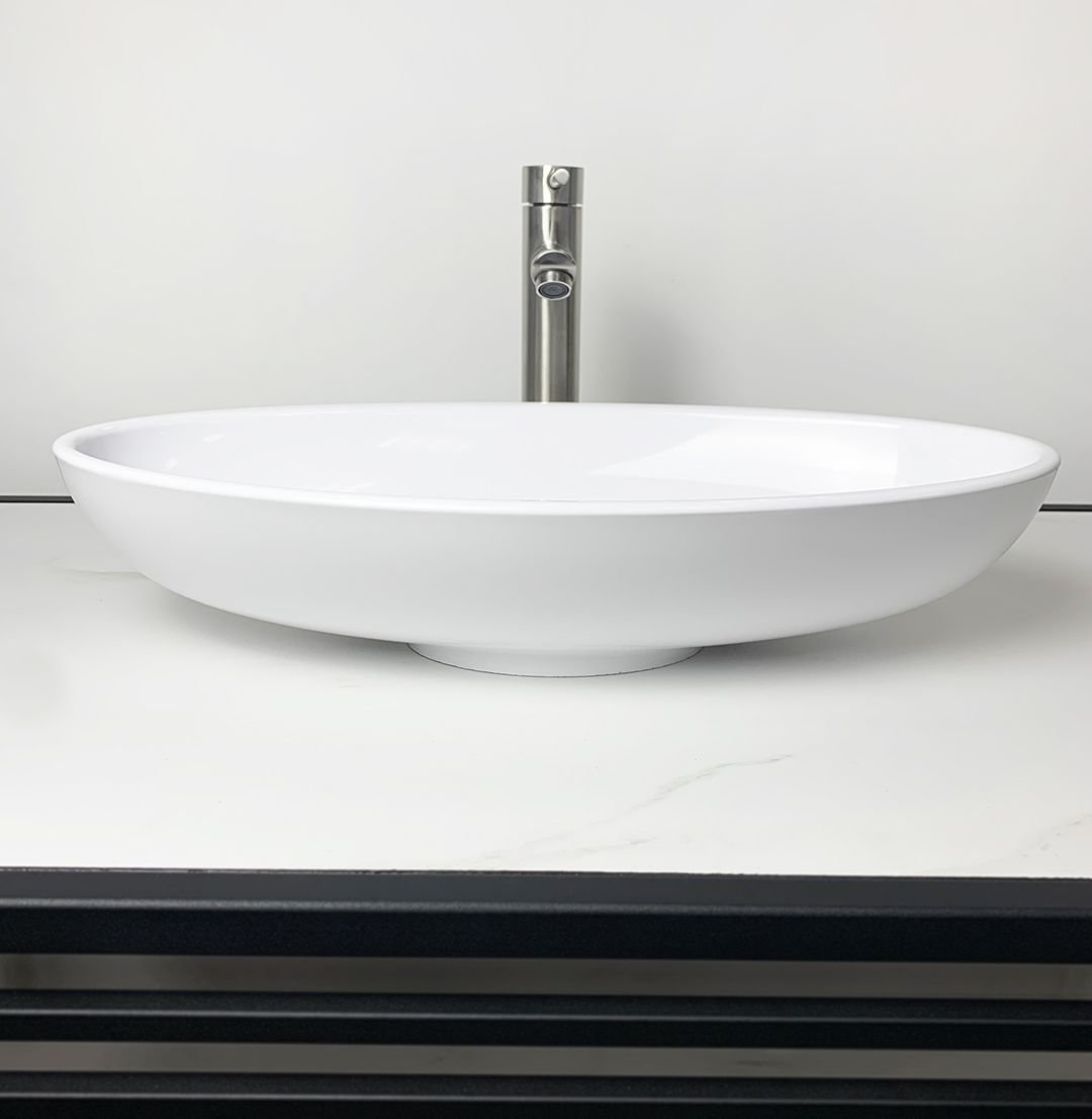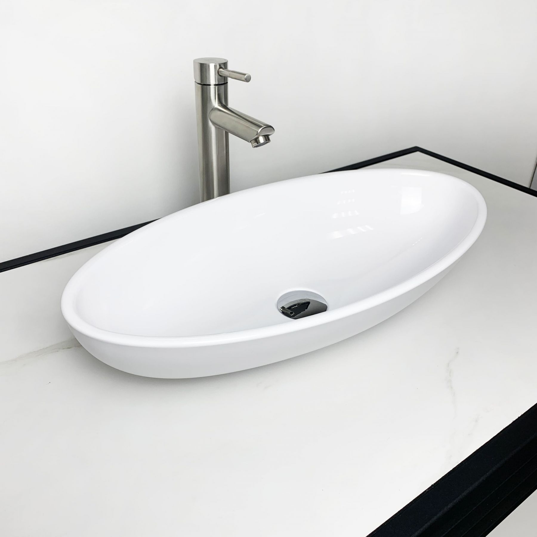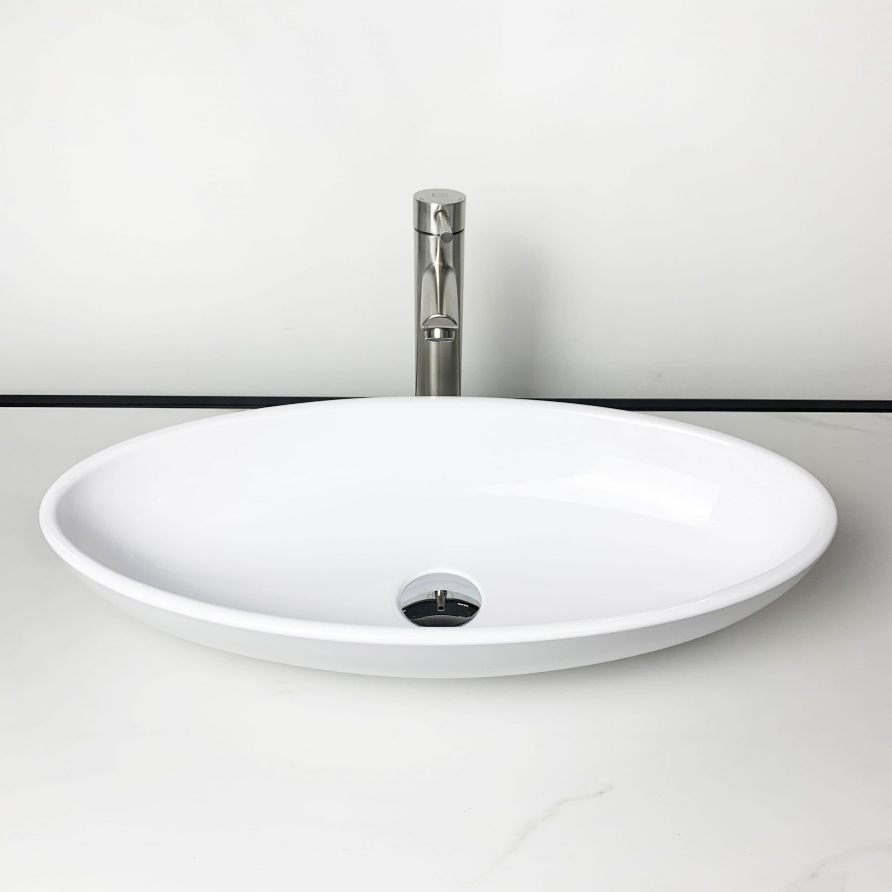 Раковина, умивальник Adamant ANDERE NEW, штучний камінь, овальна, без отвору для змішувача та переливу, 590х295х130мм, накладний, білий