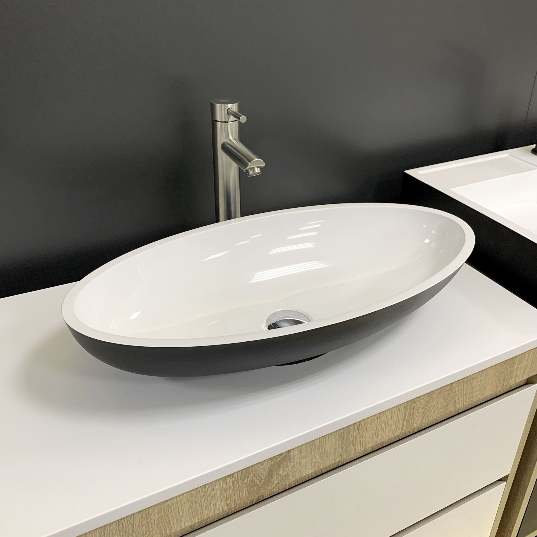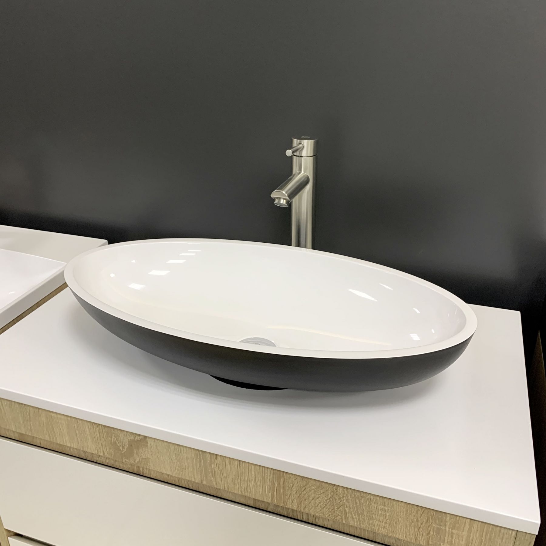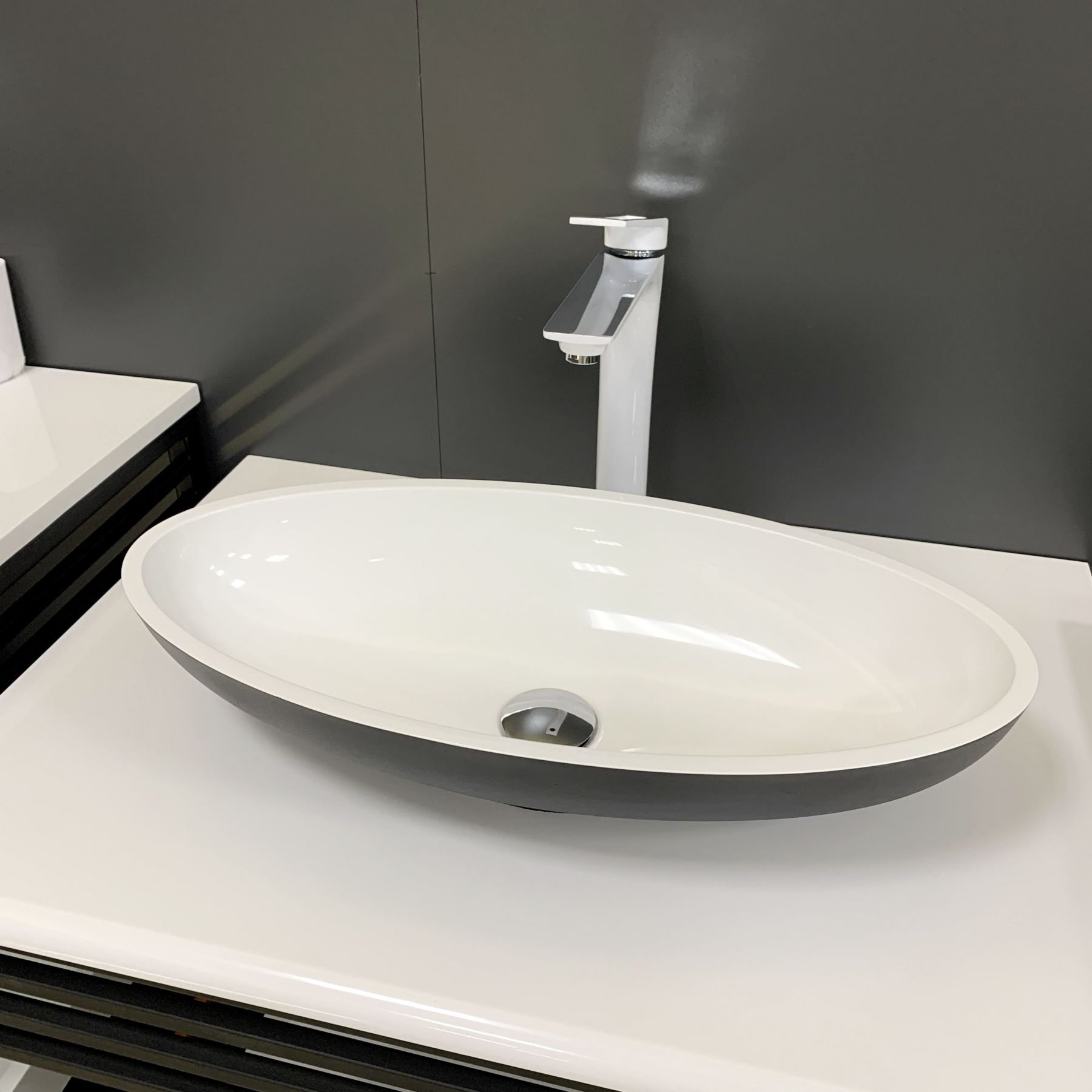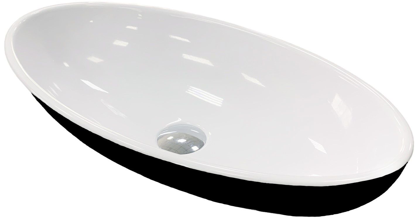 Раковина, умивальник Adamant ANDERE NEW, штучний камінь, овальна, без отвору для змішувача та переливу, 590х295х130мм, накладний, чорно-білий