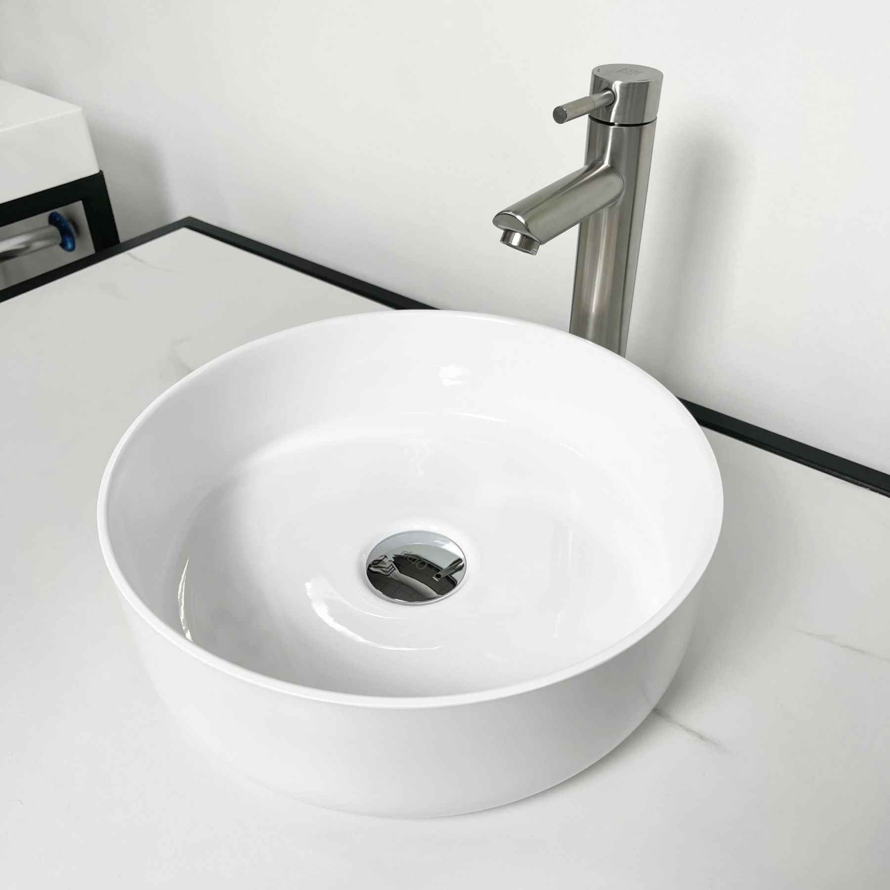 Раковина, умивальник Adamant ARENA, штучний камінь, кругла, без отвору для змішувача та переливу, 360х113мм, накладний, білий