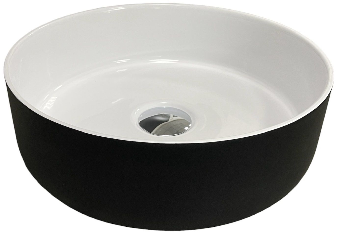 Раковина, умивальник Adamant ARENA, штучний камінь, кругла, без отвору для змішувача та переливу, 360х113мм, врезной, чорно-білий