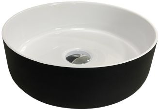 Раковина Adamant ARENA має круглу форму, виготовлена зі штучного каменю з розмірами 360 x 113 мм та чорно-білим кольором. Накладний тип встановлення без отвору для змішувача та переливу дозволяє монтаж зверху на стільницю. Матеріал створений за технологією Solid Surface, стійкий до впливу та довговічний.