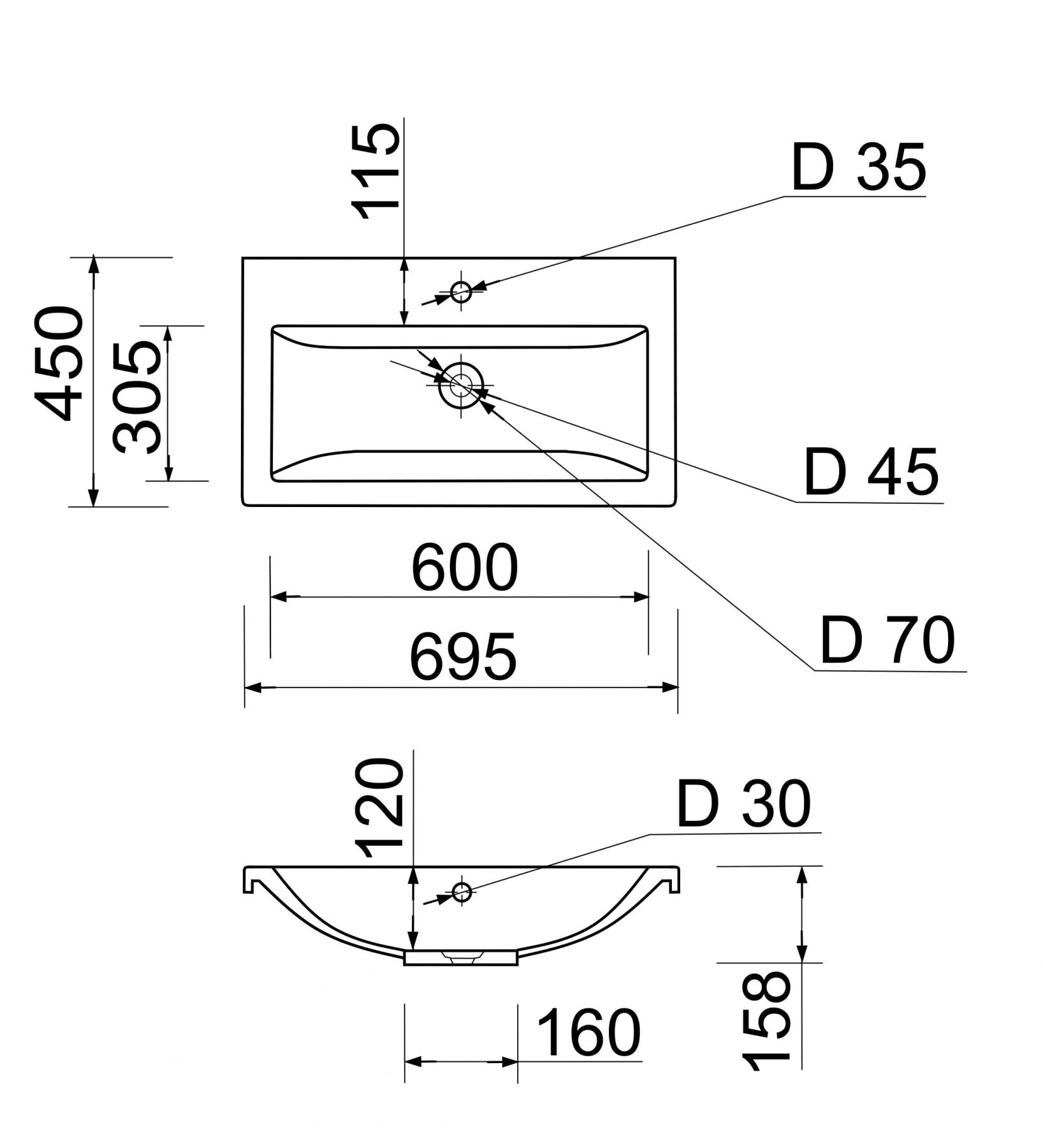 Особливості:з переливним отвором, технологія Solid Surface