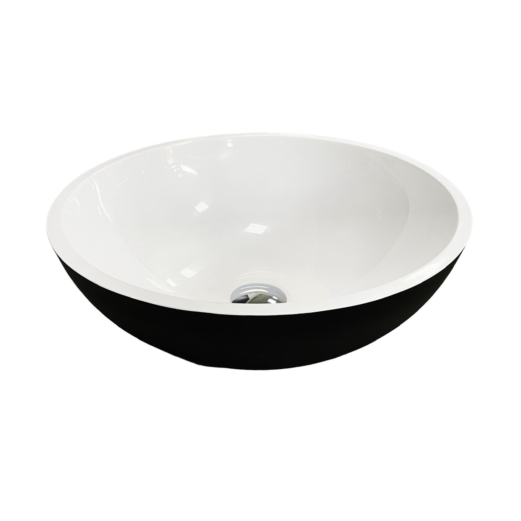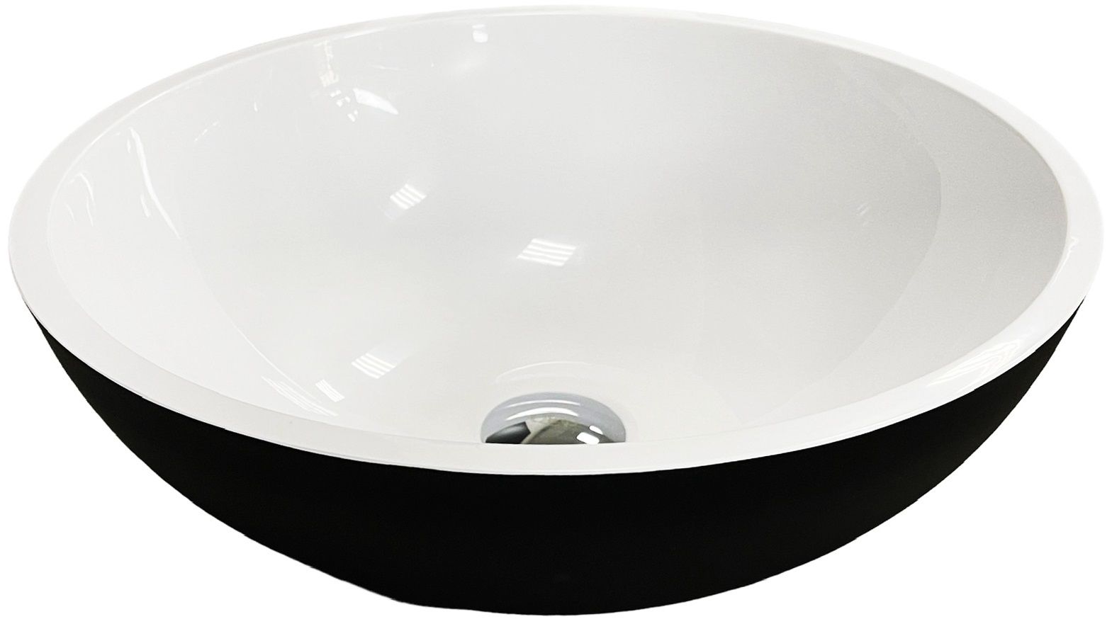Раковина, умивальник Adamant KREIS, штучний камінь, кругла, без отвору для змішувача та переливу, 420х150мм, накладний, чорно-білий