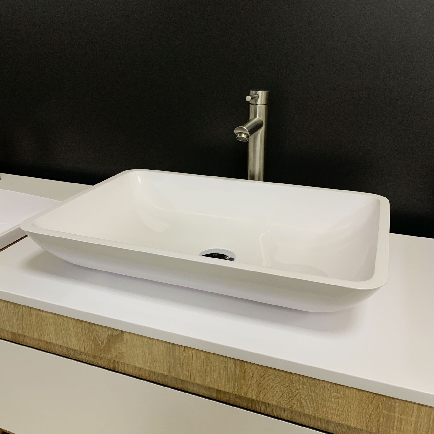Раковина, умивальник Adamant LOWER, штучний камінь, прямокут., без отвору для змішувача та переливу, 560x360x100мм, накладний, білий