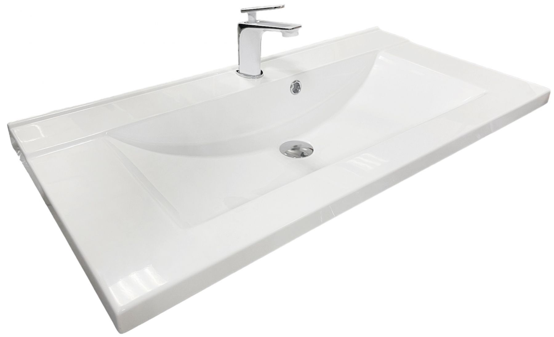 Раковина, умивальник Adamant QUANTO, штучний камінь, прямокут., з отвором для змішувача, з отвором для переливу, 900х447х140мм, накладний, білий