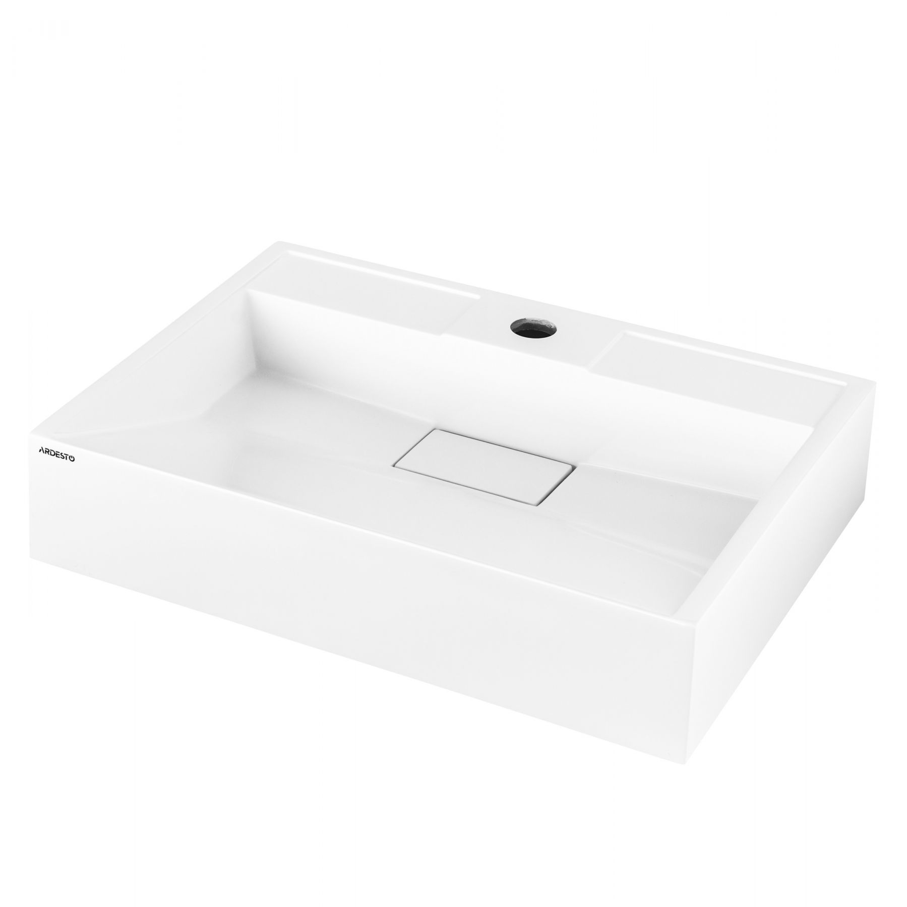 Раковина, умивальник ARDESTO Anna, штучний камінь, прямокут., з отвором для змішувача, без переливу, 500х380х110мм, накладний, білий