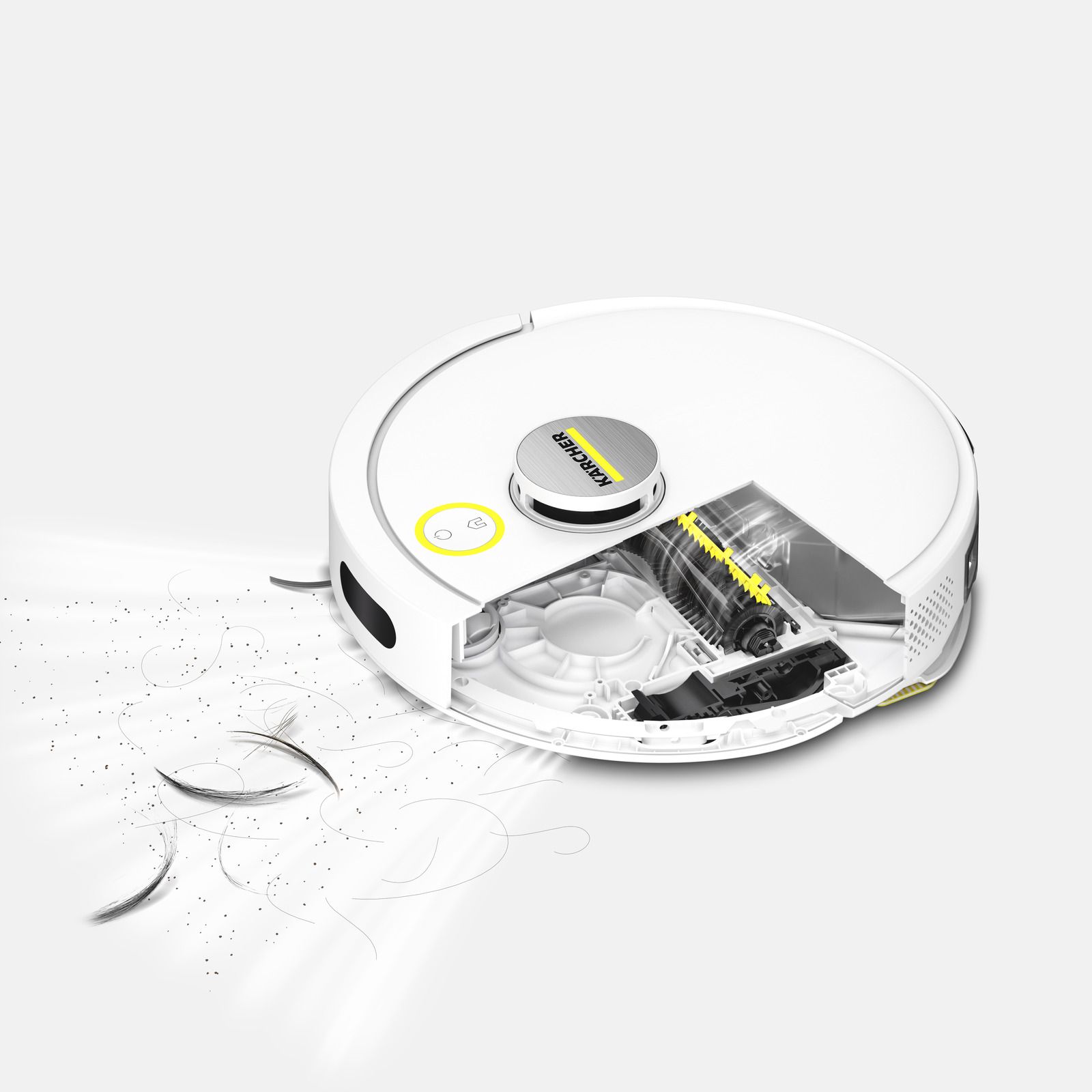 Робот-пилосос Kärcher RVC 3 з LiDAR-навігацією автономно прибирає тверді покриття та килими з низьким ворсом, збираючи сухий бруд у контейнер 240 мл і виконуючи легке вологе прибирання серветкою з баком 280 мл. Сила всмоктування до 15 000 Па та чотири режими дозволяють ефективно справлятися з пилом, волоссям і дрібним сміттям, а датчики перепаду висот запобігають падінню зі сходів. Керування відбувається через мобільний застосунок з можливістю створення карти, встановлення заборонених зон і розкладу прибирання.