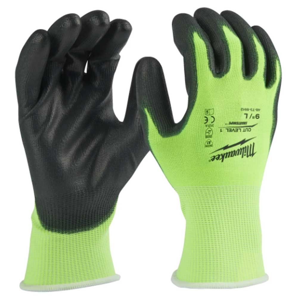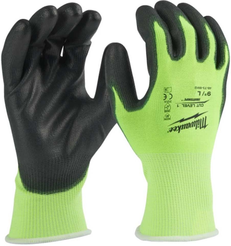 Рукавички Milwaukee розміру 9 призначені для забезпечення підвищеної видимості, захисту від порізів та комфорту протягом усього робочого дня. Флуоресцентний матеріал - забезпечує високу видимість у умовах низького освітлення, підвищуючи безпеку на робочому місці. Рівень захисту від порізів B - відповідає стандарту EN 388 з показниками: стійкість до стирання – 3, порізів – 2, розриву – 4, проколу – 2. SMARTSWIPE - технологія на долонях та кінчиках пальців дозволяє користуватися сенсорними пристроями без необхідності знімати рукавички. Легкий та тонкий дизайн - поліуретанове покриття на долонях забезпечує підвищену спритність та комфорт під час роботи.