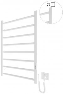Електрична рушникосушарка HF Leeds 770×530. Працює за технологією сухого ТЕНу. Обладнана вбудованим таймер-регулятором і конектором для підключення до живлення з будь-якого боку.