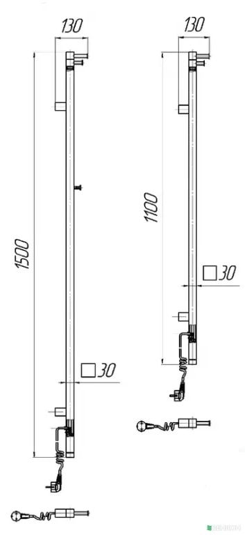Рушникосушка Mario електрична Рей Кубо-І, 1500x30x55130мм, таймер-регулятор, нерж.сталь, чорний мат