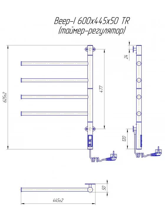 Рушникосушка Mario електрична Веєр-І, 600x445x55мм, таймер-регулятор, нерж.сталь, хром