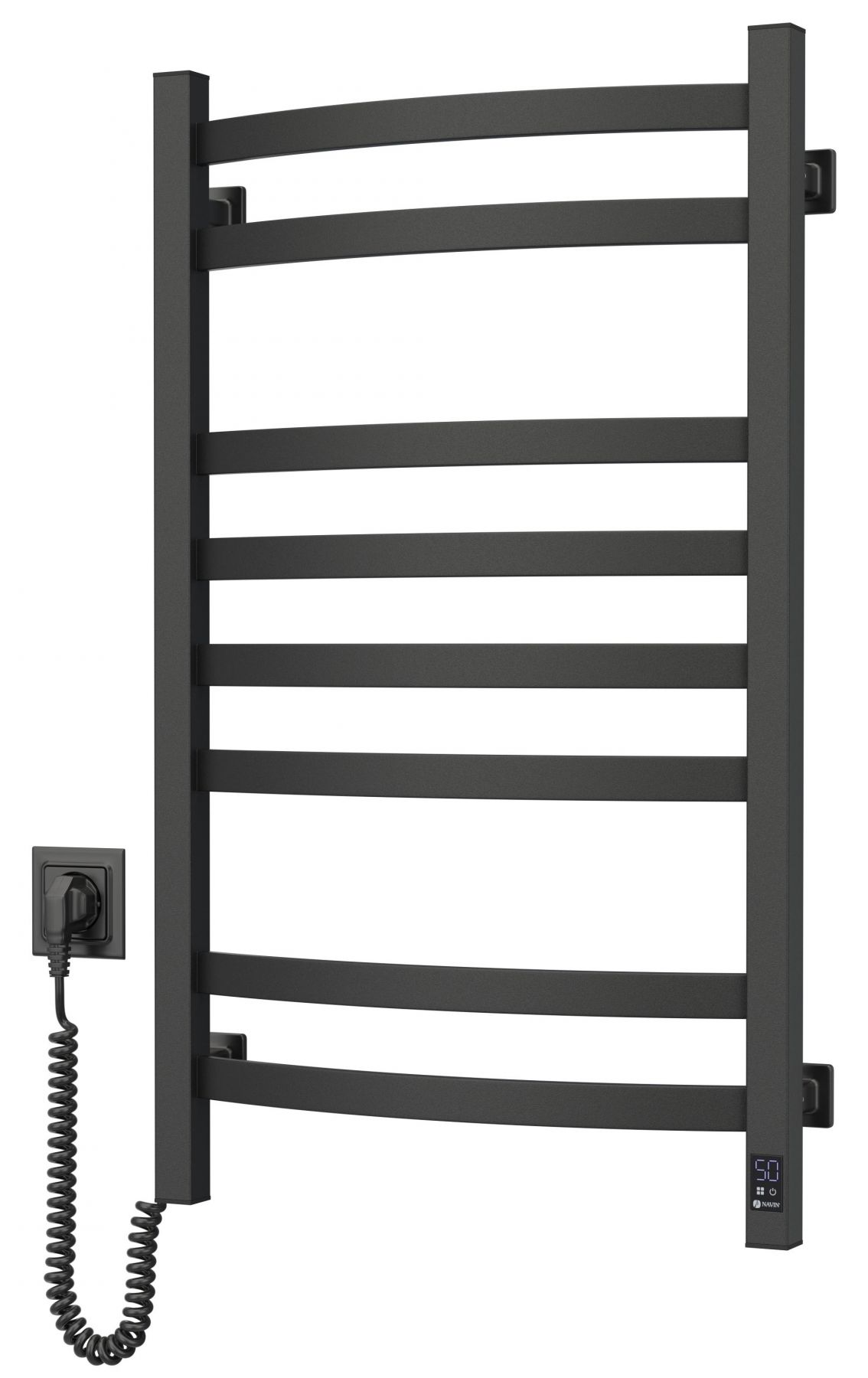 Електрична рушникосушарка Navin Avalon 12-203153-4880 у кольорі чорний муар поєднує міцність сталевої конструкції та сучасне сенсорне керування з таймером. Вісім секцій у формі драбинки забезпечують рівномірний нагрів і зручне сушіння рушників. Потужність 145 Вт забезпечує стабільну роботу з контролем температури до 55°C. Порошкове покриття підвищує стійкість до корозії та механічних впливів. Ліве розташування шнура робить монтаж зручним у різних типах інтер’єрів.