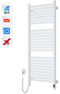 Електрична рушникосушка Navin Авангард X висотою 1200 мм забезпечує ефективне сушіння та рівномірне тепло завдяки 24 секціям і нагрівальному кабелю. Сенсорне Wi-Fi керування дає змогу дистанційно встановлювати температуру й створювати розклади. Фарбована сталь і білий колір роблять модель універсальною для сучасних ванних кімнат. Ступінь захисту IP44 дозволяє безпечно використовувати її у вологих приміщеннях.