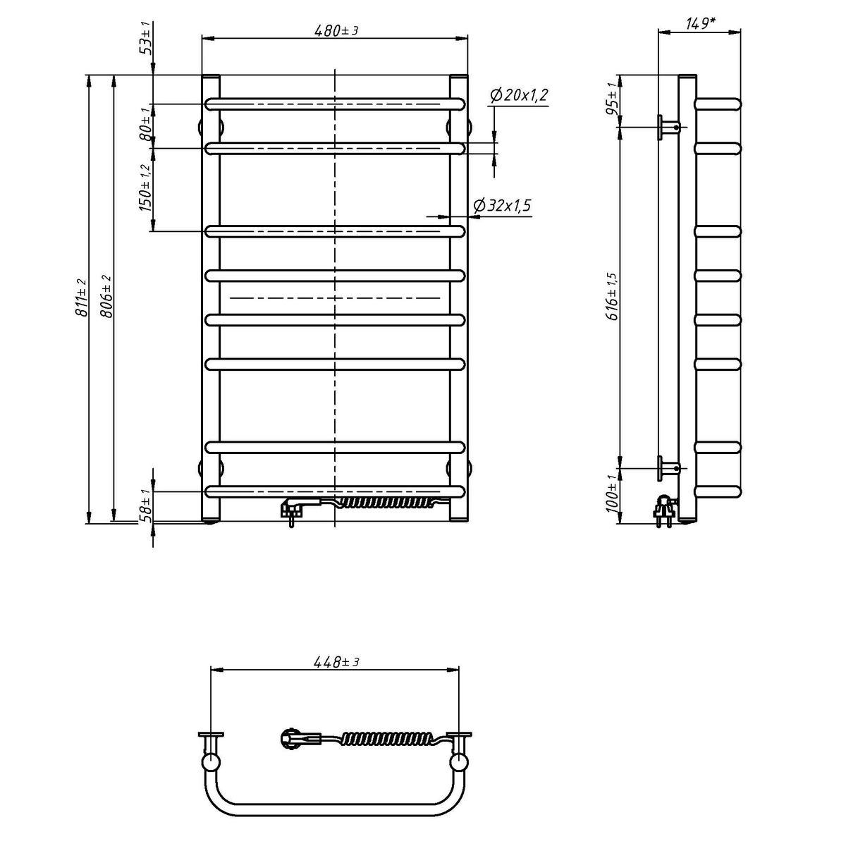 Електрична рушникосушка Симфонія 480х800 від українського виробника NAVIN виготовлена з вуглецевої сталі, яка відрізняється високою якістю і міцністю. Модель має порошкове покриття. Товщина стінки перемичок рушникосушарки складає 1,5 мм, а стійок 2 мм.