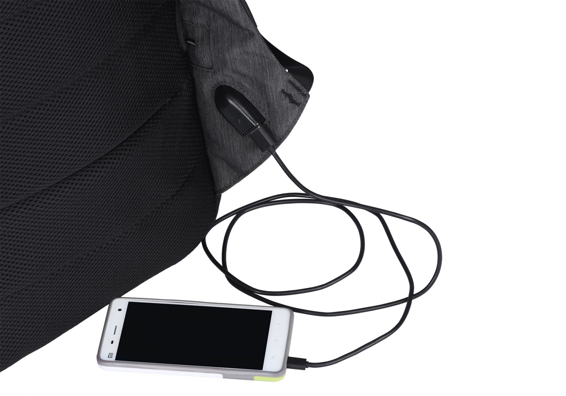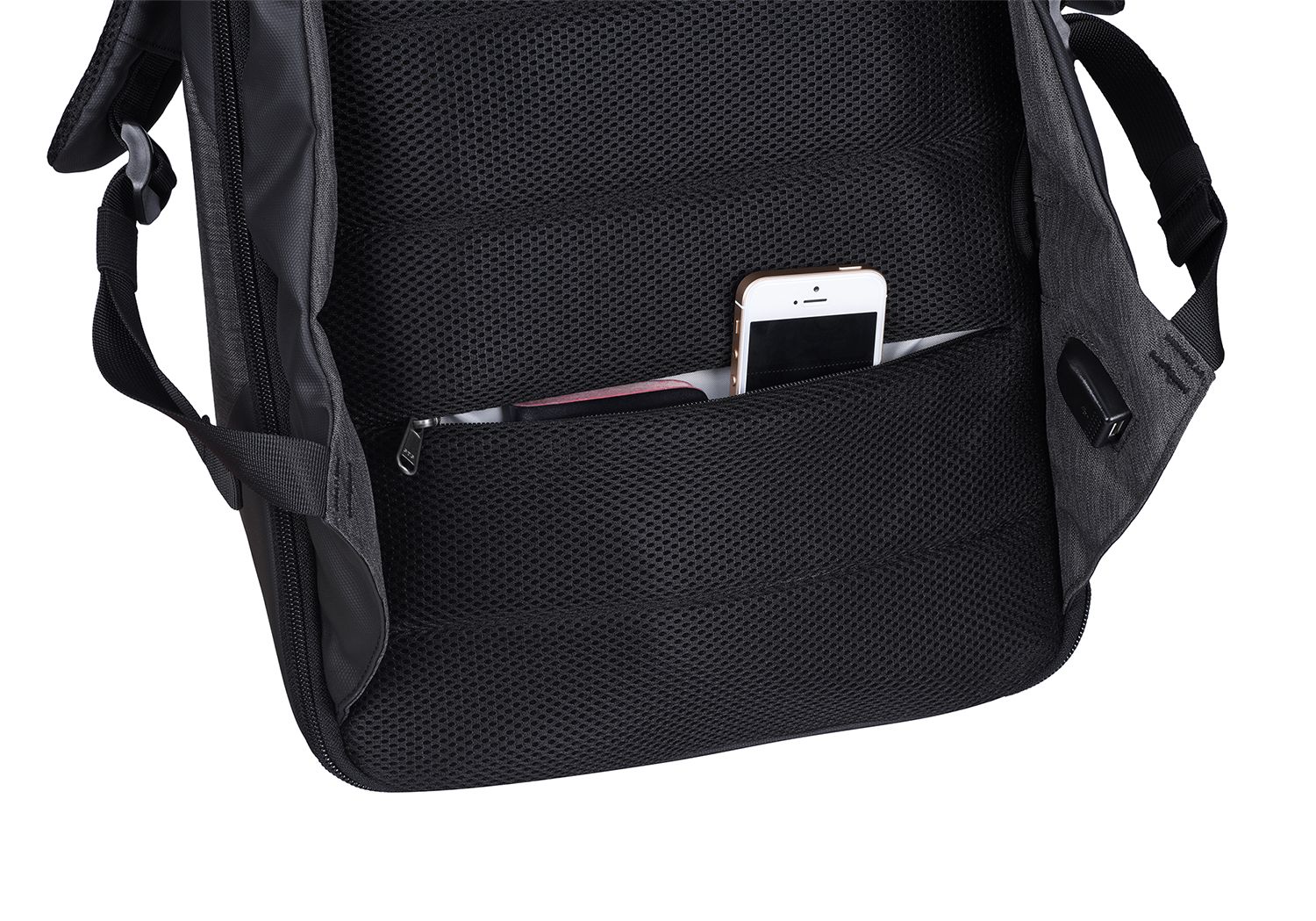 Рюкзак темно-сірого кольору для повсякденного використання та подорожей. Зовнішня частина виконана з водовідштовхуючого матеріалу, а внутрішня амортизує поштовхи та удари.