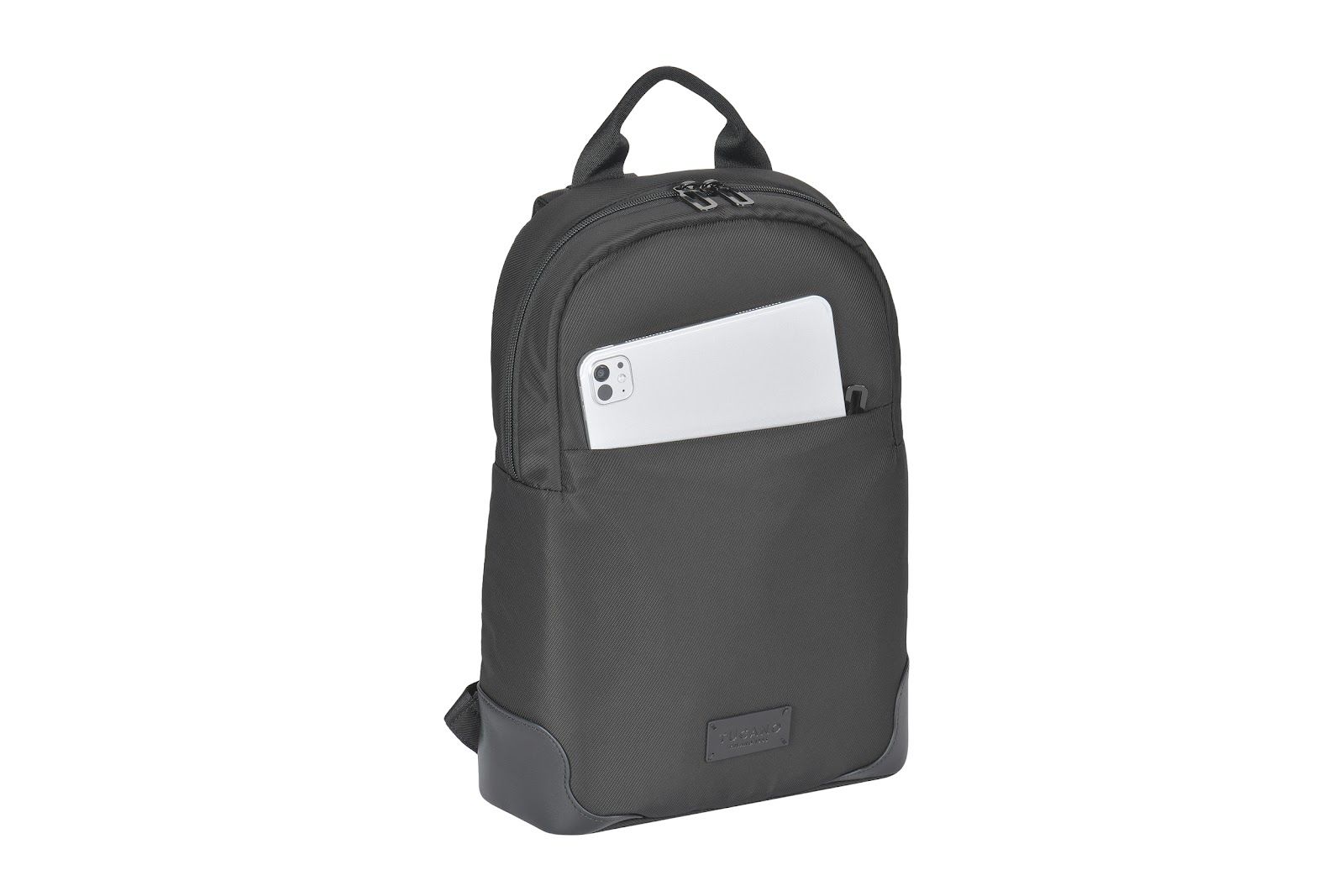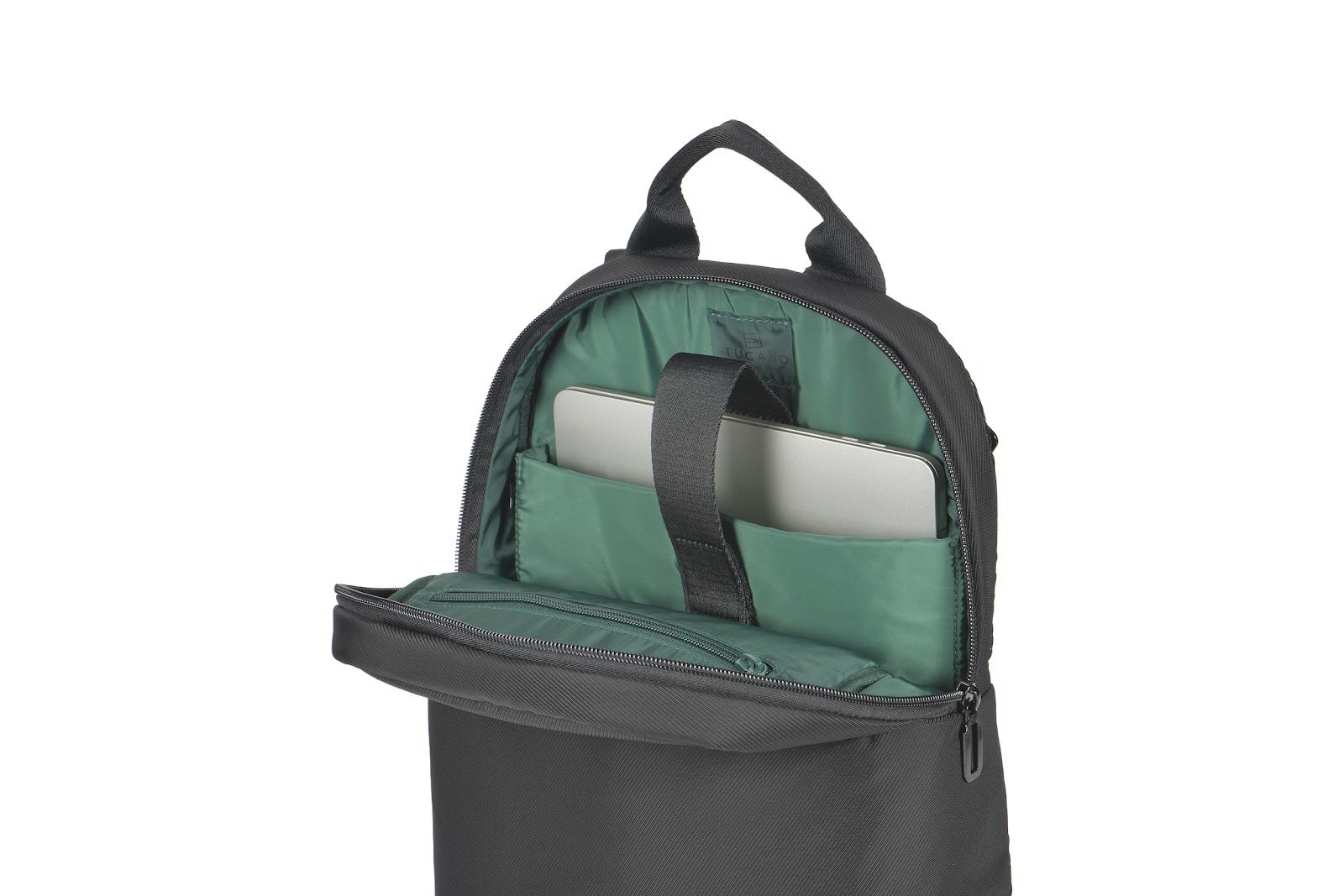 Рюкзак Tucano Fine 13"/14" поєднує діловий стиль і комфорт у щоденному користуванні. Виготовлений із високотехнологічної тканини з переробленого пластику та прикрашений шкіряними акцентами. Місткі відділення забезпечують зручне розташування ноутбука, документів та аксесуарів. М’яке відділення зберігає ноутбук у безпеці, а ремінець на спинці дозволяє закріпити рюкзак на ручці валізи. Це надійний супутник для роботи, подорожей і міського ритму.
