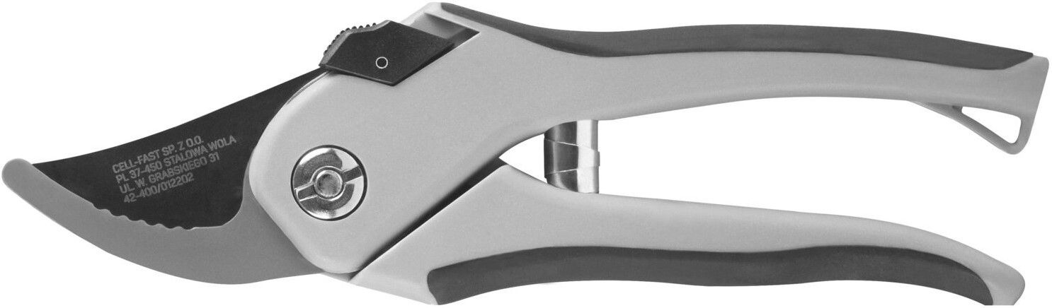 Одноручний секатор-ножиці Cellfast BASIC, призначений для різання свіжої деревини. Ручки покриті поверхнею SAFETOUCH, що забезпечує надійне захоплення та зручність використання. Верхнє лезо з антипригарним покриттям гарантує безпечну стрижку рослин. Виготовлений з алюмінію та високовуглецевої сталі, завдяки чому секатор винятково гострий. Максимальний діаметр різання 16 мм, має запобіжний замок