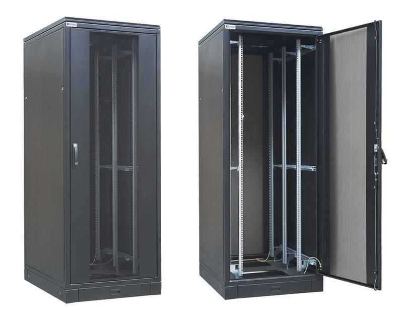 Комплектація:бічні панелі, передні двері, монтажні профілі, кабеля заземлення, шина, задні двері, розбірний каркас, регульовані ніжки