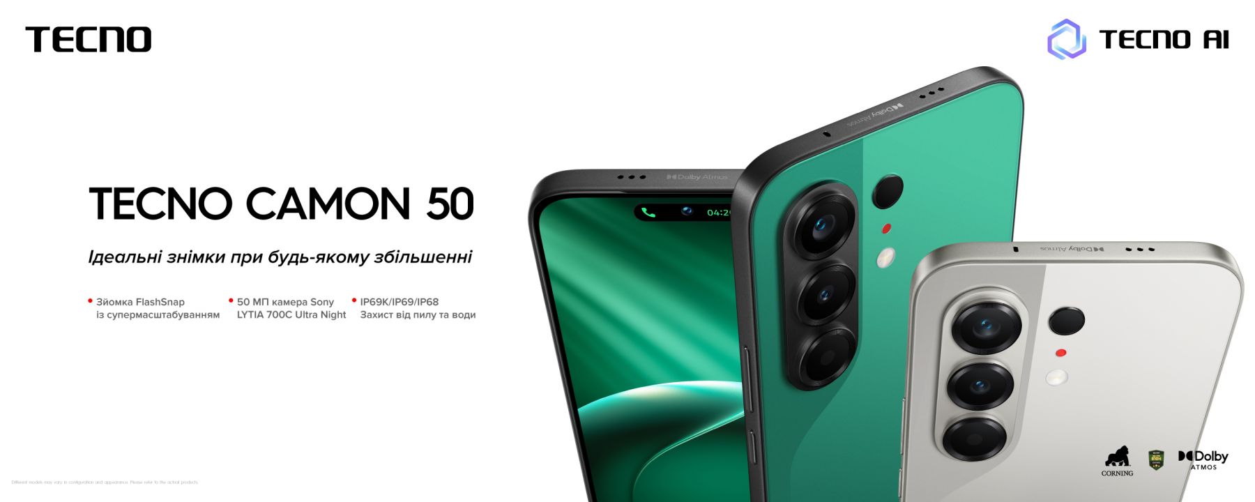 Смартфон TECNO Camon 50 оснащений 6,78-дюймовим AMOLED-екраном з частотою оновлення 144 Гц та роздільною здатністю 2436×1080. Процесор Helio G200 Ultimate з 8 ядрами доповнюється 8 ГБ оперативної пам’яті та 256 ГБ вбудованого сховища. Подвійна основна камера 50 Мп (wide з OIS) + 8 Мп (ultrawide, 112°), фронтальна — 32 Мп, а батарея на 6500 мА·год забезпечує тривалу автономність. Корпус товщиною 7,53 мм і вагою 198 г доступний у кольорі Moonshadow Black.
