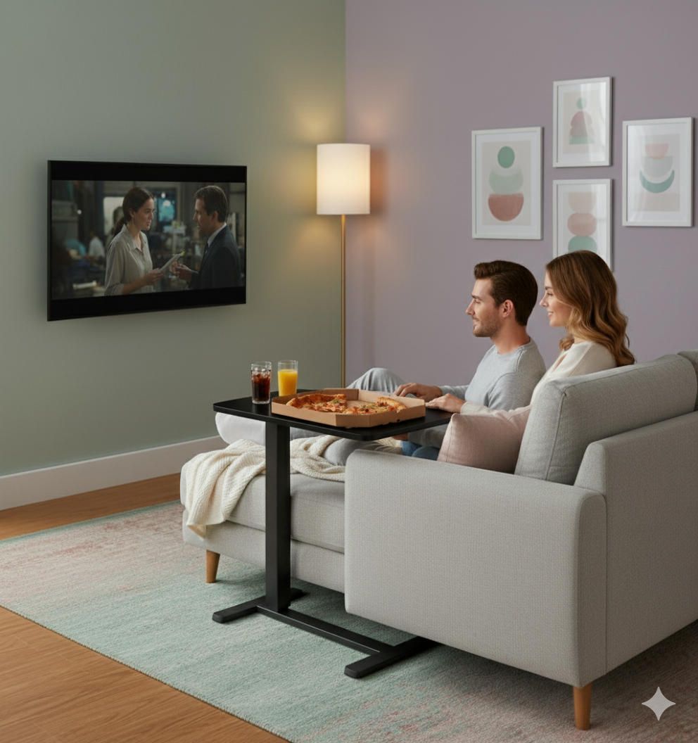 Компактний стіл із ламінованою стільницею чорного кольору та металевою рамою забезпечує комфортну роботу сидячи або стоячи завдяки плавному механічному регулюванню висоти (710–1 060 мм). Стійка конструкція, приховані коліщатка та сучасний дизайн роблять його зручним для використання вдома чи в офісі. Максимальне навантаження – до 8 кг, вага – 10,2 кг, гарантія – 24 місяці.