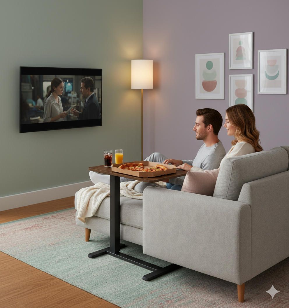 Компактний стіл із ламінованою стільницею чорно-коричневого кольору та металевою рамою забезпечує комфортну роботу сидячи або стоячи завдяки плавному механічному регулюванню висоти (710–1 060 мм). Стійка конструкція, приховані коліщатка та сучасний дизайн роблять його зручним для використання вдома чи в офісі. Максимальне навантаження – до 8 кг, вага – 10,2 кг, гарантія – 24 місяці.