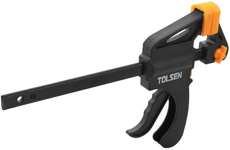 Струбцина Tolsen швидкозатискна довжиною 150 мм призначена для фіксації деталей в момент обробки. Модель оснащена функціями стискання та розтискання. Інструмент зручний тим, що дозволяє здійснювати затискання однією рукою.